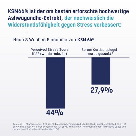 ✓ Ashwagandha-Wurzelextrakt KSM-66® : Patentierter und organischer Extrakt, der zur Unterstützung der Stressresistenz untersucht wurde und uns in Zeiten mentaler und nervlicher Anspannung unterstützt und so zum emotionalen und allgemeinen Wohlbefinden beiträgt1. Seine Wirksamkeit wurde in über 22 klinischen Studien am Menschen getestet.